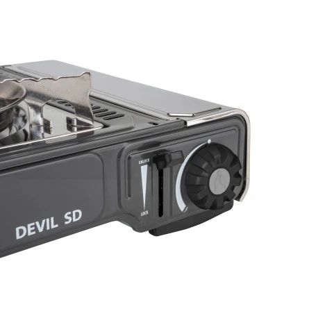 Fornello a cartuccia con accensione piezoelettrica e termocoppia.