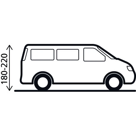 Tenda indipendente per minibus con struttura pneumatica A.I.R Tech a 2 archi. Accesso diretto mediante entrata aggiuntiva nel tunnel di collegamento.