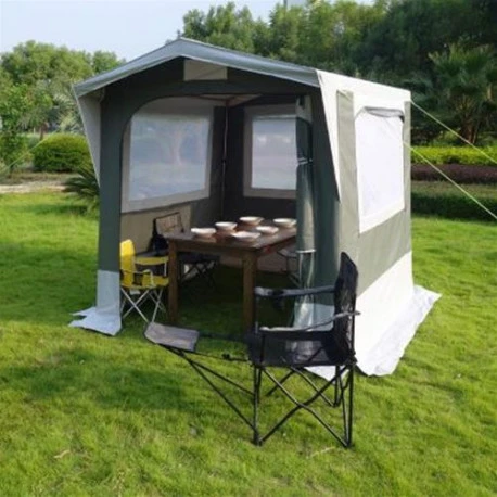 Il cucinotto da campeggio Olympe è una vera e propria cucina per il vostro camping outdoor. Completo di porta avvolgibile sulla parete anteriore, con finestre con profili arrotondati sui tre lati, Olympe è dotato di zanzariere e coprifinestre incernierate.