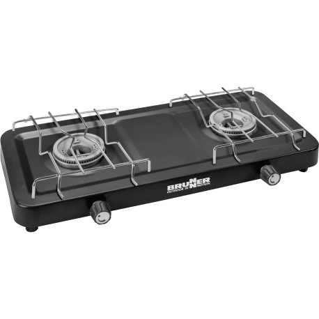 Fornello gas a 2 fuochi stabile e compatto, facile da trasportare.