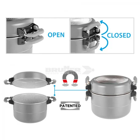 Pentole Brunner Fusion 7+1 Ø 22 sono il primo modello con chiusura magnetica, con strato interno di ceramica antiaderente. Compatibili con fornelli a gas, elettrici, a cerchio radiante, ceramica e induzione! Colore grigio chiaro. Seti impilabile.